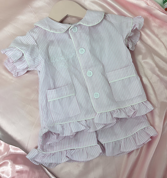 3-4 YEARS NEXT WORKING DAY DISPATCH - KIDS PINK STRIPED SEERSUCKER PERSONALISED SHORT PYJAMAS