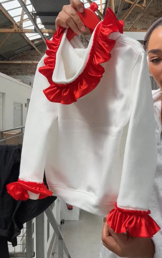 RED FRILLY PERSONALISED JUMPER 2-4 WEEKS